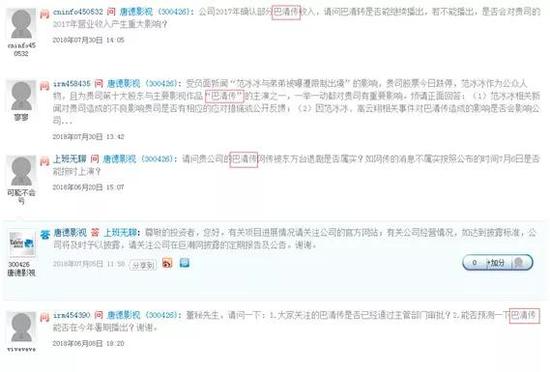 一周跌了那么多,范冰冰持股的这家公司情况真的很糟? 原创 陈碧玉 继7月30日跌停之后,唐德影视(8.750, 0.19, 2.22%)8月2日再度逼近跌停,3日开盘后高开低走,收盘股价仍然飘绿,一周下跌28%。 今年是唐德影视登陆A股的第三年,也是一众明星股东持股解禁、可上市流通的日子,其中就包括范冰冰、赵薇、张丰毅……唐德影视2018年一季报显示:至3月底,范冰冰(因解禁)新进成为公司第6大流通股东,持有约645万股,占公司总股本的1.61%。 细数起来,唐德影视和范冰冰的渊源颇深。 2007年,由唐德影视投拍、范冰冰主演的《胭脂雪》在各地方频道播出,收益还不错。此后,唐德影视便频频参与范冰冰出演的影视作品。多年合作后,2014年底,由唐德影视投拍、范冰冰主演的《武媚娘传奇》上映,迅速成为热门大剧。据2015年年报,在公司销售的主要电视剧中,《武媚娘传奇》当年贡献收入1.98亿元,占唐德影视当年营业收入的36.87%。 可以说,正是《武媚娘传奇》的大热,给唐德影视2015年初的风光上市打下了底气。当然,范冰冰也有其丰厚回报,上市之时已是唐德影视的第十大股东。范冰冰、赵薇作为公司股东,还曾一同亮相唐德影视的上市敲钟现场。 上市后,唐德影视继续与范冰冰深度捆绑:虽曾拟收购范冰冰的爱美神公司未果,此后还是与爱美神公司合资成立了无锡唐德文化传媒有限公司,法人代表就是范冰冰。影视制作方面,范冰冰担任了唐德影视参投的《挑战者联盟》的嘉宾;由范冰冰主演的电视剧《巴清传》依然是唐德影视投资…… 《巴清传》这部由范冰冰、高云翔主演的古装剧,对唐德影视的经营影响不小。在2017年年报中,收入额占公司主营业务收入前5名的影视作品中,首先就是《巴清传》。 同样,在2018年第一季度的营收构成中,《巴清传》带来的收入仍占相当部分。 虽然已有回款,但唐德影视以重金打造的《巴清传》却尚未播出。此前受男主角“涉案”影响,一度传出“退单”消息。对此,唐德影视也发过澄清公告: 对此,还有人注意到,在近日东方卫视举办的2018年下半年资源沟通会上,《巴清传》却并未被提及。《巴清传》能否顺利播出对唐德影视来说关系重大,也是投资者平台上的热点提问。 再看唐德影视近4个月的走势,7月初因参投的现象级电影《我不是药神》热映,股价曾有短暂提振,但总体看,还是一路走低。 “跌跌不休”的股价,也引发了补充质押。8月2日公司公告,第一、第二大股东吴宏亮(实控人)、李钊分别将其所持有的部分股票办理了补充质押。补充质押后,吴宏亮已质押股份累计占其所持公司股份的88.68%;李钊的持股累计质押比例则达99.97%。 那么,唐德影视的境况究竟如何?除了《巴清传》的“靴子”尚未落地,公司其他剧集似乎卖得不错。 7月12日的半年报预告显示,公司预计上半年净利润为8500万至9500万元,同比增长41.49%至58.14%,营业收入主要来源于电视剧《战时我们正年少》《东宫》的版权转让收入和电视剧《脱身》的联合摄制分账收益(这回没提《巴清传》了)。